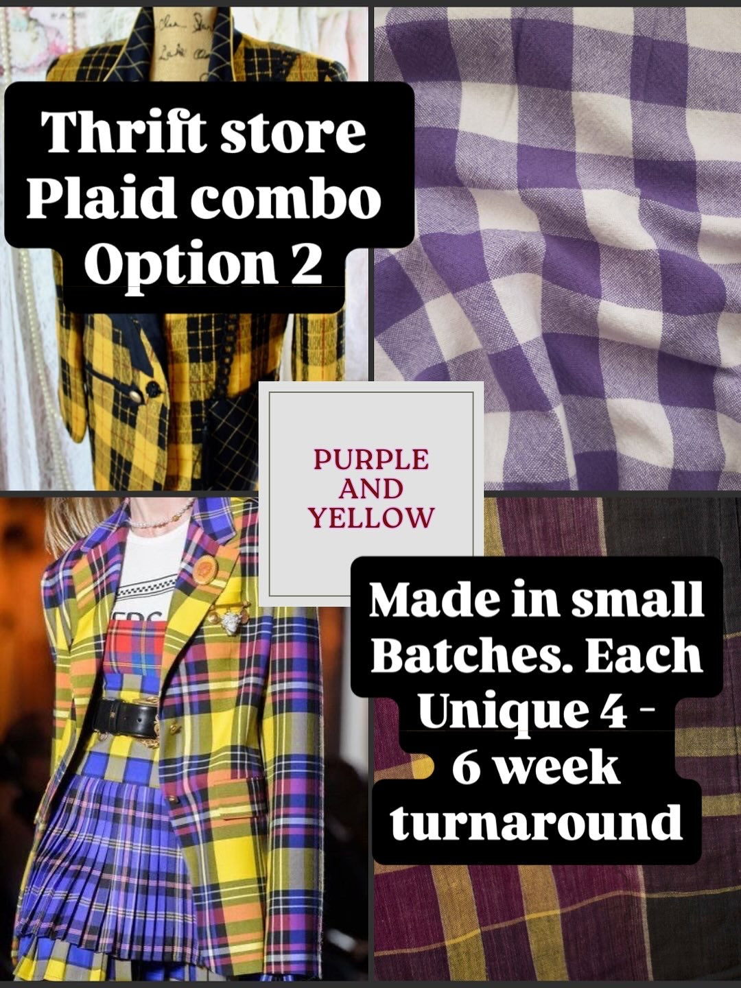 Tell the world WHO YOU ARE! UGH! I love, love, LOVE! This Westwood plaid inspired version of the thrift store slut design. Made entirely from secondhand sourced plaid fabrics and deadstock trim. Adorned with at least one unique gold pin and a ribbon charm spot. I wanted the bag to look like a pile of fabulous stuff at the bottom of a thrift store bin and when you go to reach for just one of the things you realize it's all one amazing bag!!